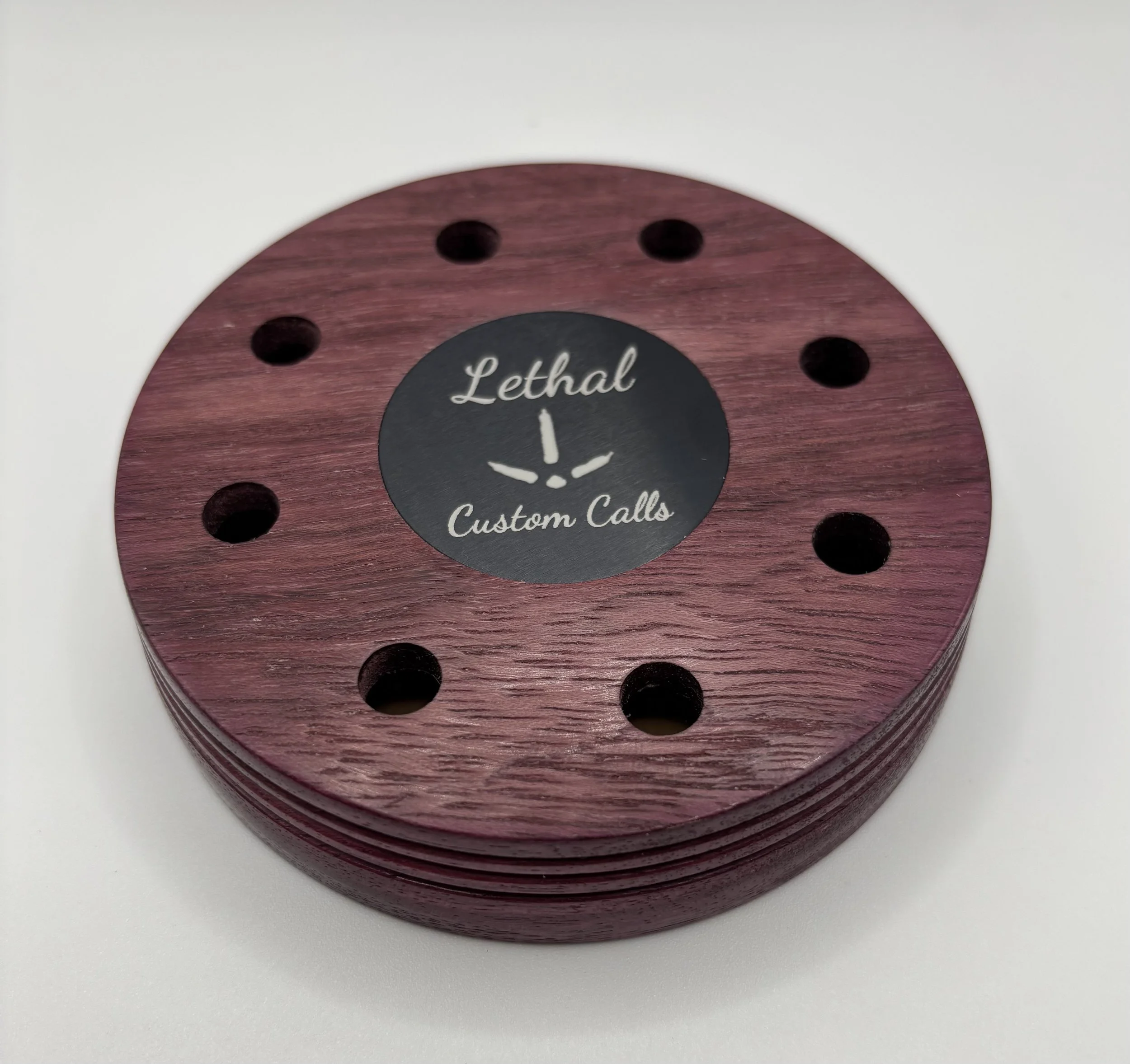 Categories: All Turkey Calls Pot Calls Diaphragm Calls Tube Call Owl Hooters/ Crow Calls Deer Calls Predator Calls Apparel/ Accessories All | Turkey Calls | Deer Calls | Predator Calls | Apparel/ Accessories | Olive wood / green slate pot call $100.00 Sapele pot call/ ceramic $100.00 Purple Heart and ceramic pot call $80.00 Ziricote/ ceramic pot call $80.00 Crow call- walnut $35.00 Crow call $35.00 Buck grunt tube $50.00 Buck grunt tube- gray/black $50.00 Lethal Custom Calls hat- Copper $25.00 Lethal 3 Pack $22.00 Mean V- 3 reed V cut $8.00 Black Widow- Reverse combo cut $8.00 Yellow heart, Purple Heart, walnut laminate pot call $90.00 Zebra, maple, canary, wenge laminate pot call $80.00 Sold out Coyote/ predator call- Cherry $30.00 Coyote/ predator call- Walnut $30.00 Zebrawood double sided pot call $80.00 Heartbreaker batwing mouth call $8.00 Black Limba / Ceramic pot call $75.00 Conditioning stone on a stick $10.00 Red hot- 3 reed combo cut $8.00 Osage/ Crystal over carbon fiber pot call $100.00 Sold out Laminate / red slate pot call $85.00 Sold out Shedua/ stoned aluminum pot call $80.00 African Blackwood owl hooter $60.00 Sold out Bocote Owl hooter $60.00 Sold out The Punisher- 3 reed batwing cut $8.00 Purple Turkey Eater- 2 reed combo cut $8.00 Beginner 3 Pack- mouth calls $18.00 Lace wood/ crystal pot call $100.00 Sold out Black walnut/ Save the Poults $100.00 Sold out Kiaat/ ceramic pot call $85.00 Bloodwood/ ceramic pot $85.00 Osage/ carbon fiber/ crystal $100.00 Custom maple burl hybrid pot call $150.00 Sold out Holly/ ceramic pot call $80.00 Lethal tube call $16.00 Ceramic pot call $80.00 Buck grunt tube $50.00 Snake wood crow call $35.00 Bocote crow call $35.00 Black Limba/ crystal $80.00 maple hybrid $150.00 Maple Burl Hybrid $150.00 Sold out Green laminate grunt tube $50.00 Lethal Custom Calls T Shirt from $20.00 Mouth Call holder clip $10.00 Lethal Custom Calls Hat- Bottomland $25.00 Buck grunt tube- blue/ gray $50.00 Custom resin turkey call $150.00
